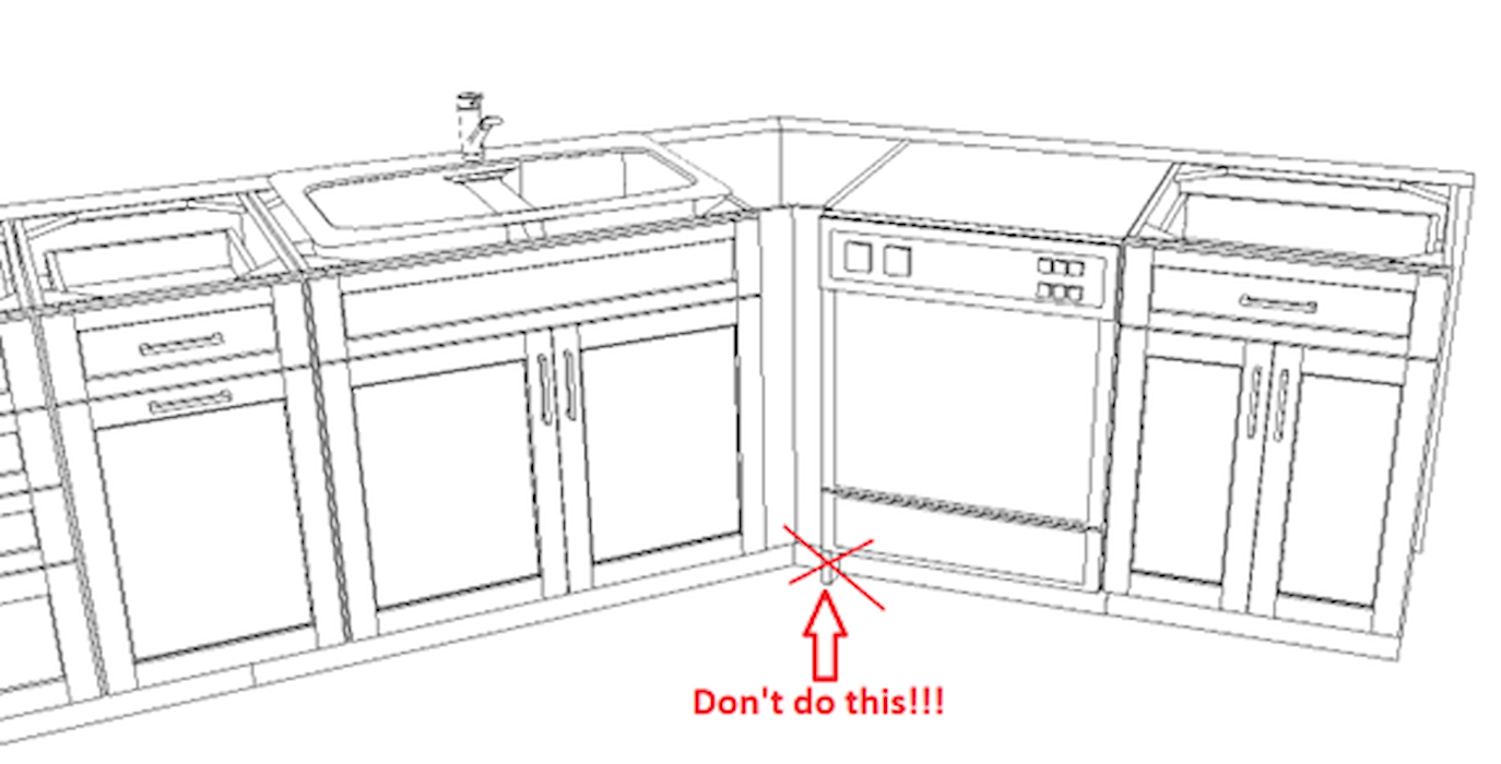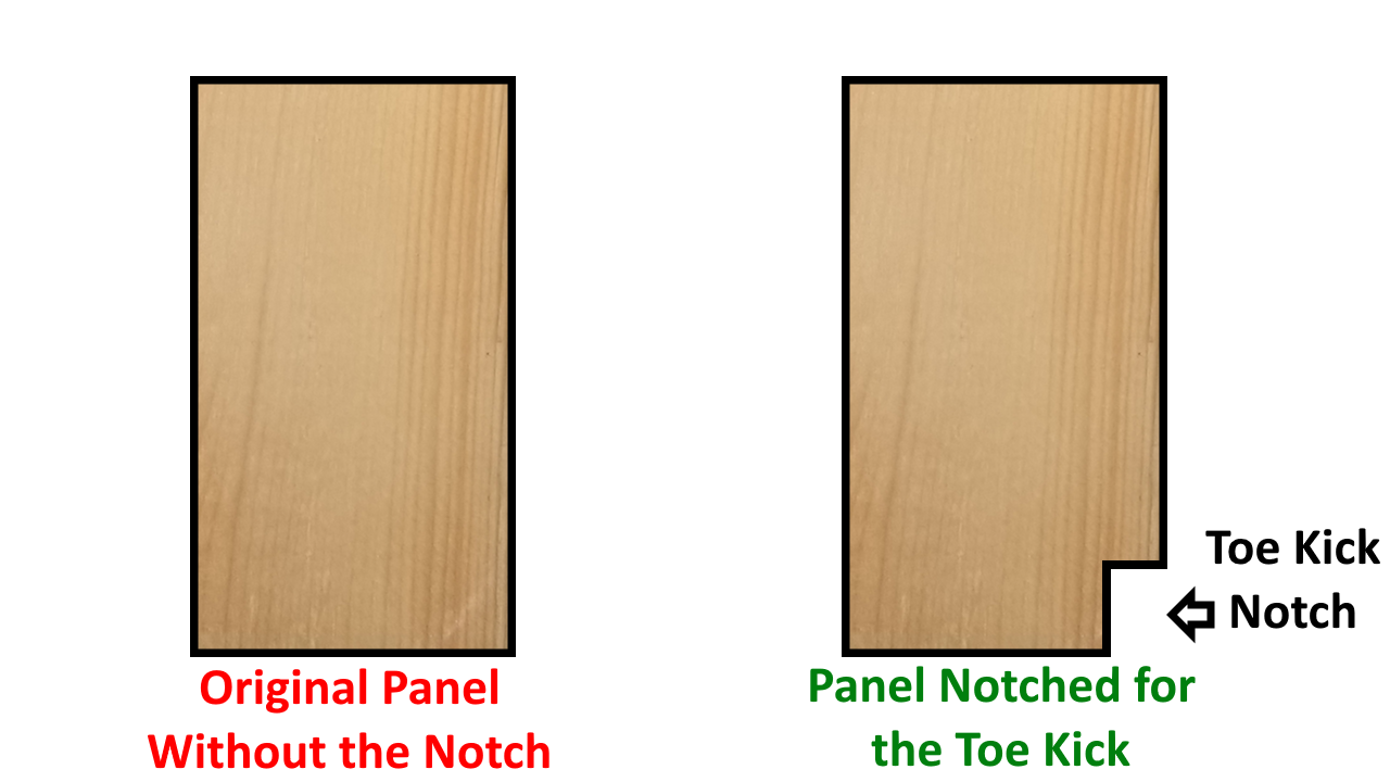 Now compare this to the second example, where the panel is not notched for the toe kick. Not only does it look wrong, but your customer's toes are also at risk.