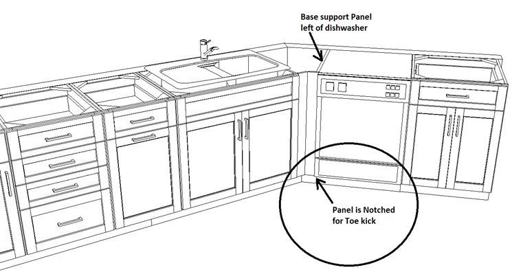 This rule applies to all panels that are installed at base depth, including tall panels and island panels. If you look at the design and think a panel should be notched for the toe kick, you are probably right, so break out your jigsaw and make the cut!